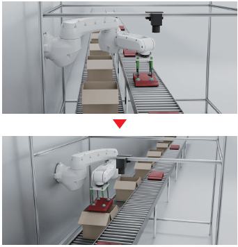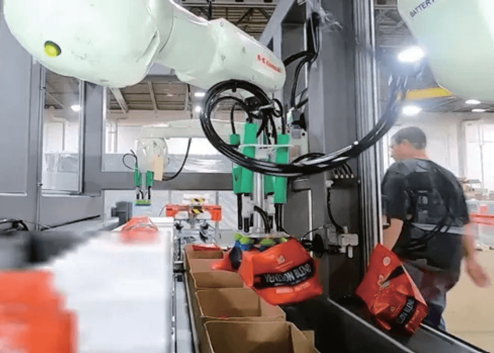 MWES, ein von Kawasaki Robotics zertifizierter Systemintegrator mit Sitz in Michigan, USA, hat eine flexible Kartonier-Automatisierungszelle mit Förderband-Trackern und Vakuumgreifern gebaut, indem er Kawasakis kleinen Universalroboter RS007L mit der Bildverarbeitungssoftware „K-VFinder“ kombiniert hat, um dem Arbeitskräftemangel und der Handhabung verschiedener Produkttypen und Kartongrößen in der Lebensmittel- und Getränkeindustrie zu begegnen. Das System verfolgt das fließende Beutelprodukt durch Bildverarbeitungserkennung genau und bestimmt die optimale Entnahmeposition in Echtzeit, wobei eine hohe Geschwindigkeit von 80 Beuteln pro Minute und eine sofortige Reaktion auf unterschiedliche Kartongrößen erreicht wird. Dadurch wird der Arbeitsaufwand, der dem von drei Arbeitern entspricht, reduziert und eine hohe Produktivität erzielt.