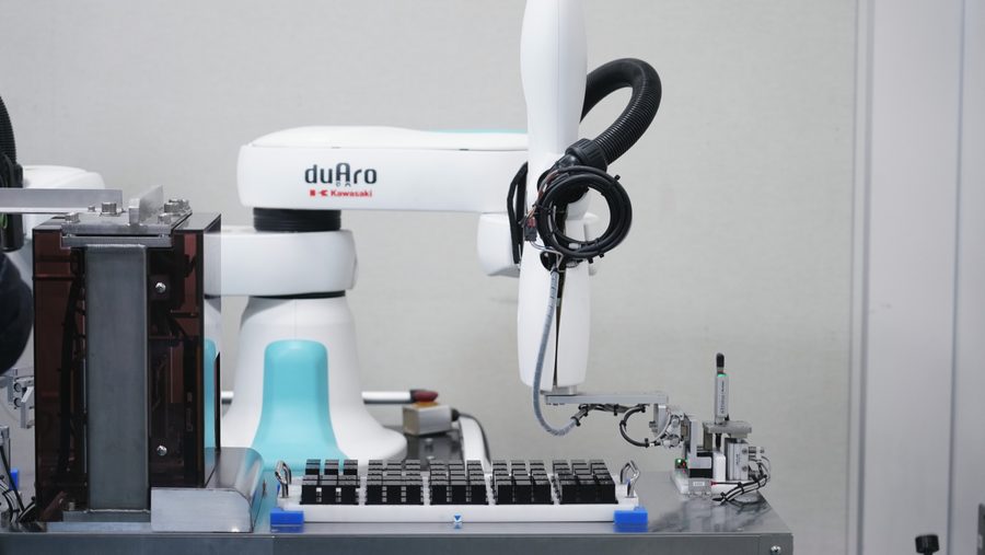 What should be done to introduce industrial robots into a space where people are perfꦦorming the main part of the work? The answ💛er to that was the “duAro” collaborative type dual-arm SCARA robot from Kawasaki.