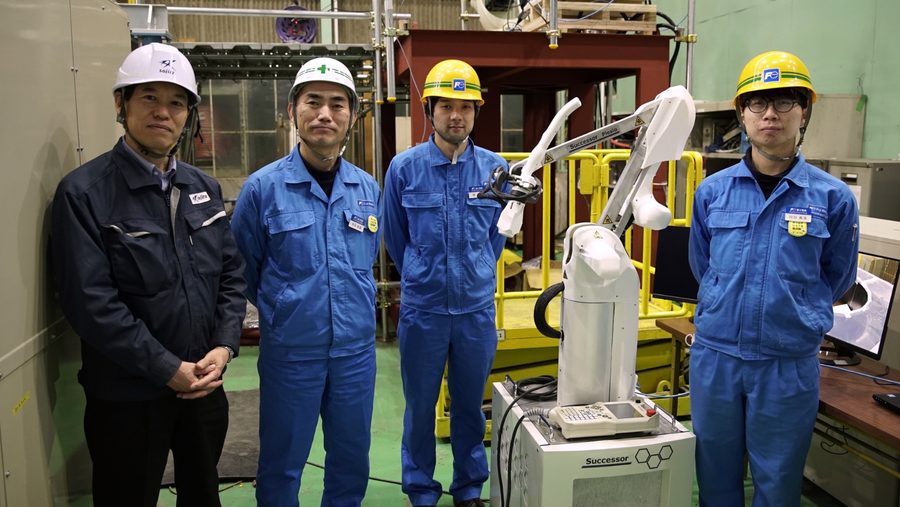 The robot system is currently being tested with water and dummy slag. However, Mr. Morita says that, “During fiscal 2022, we want to proceed up to the stage of actually installing the system in the workplace of a cooperating customer and performing actual slag scraping work.” In addition to the slag scraping, researches have also begun on substituting work to utilize the feature of the Successor by connecting the robot and human workers in remote collaboration. Mr. Kakuta says, “The workers around the furnace could be further reduced if the robot could also perform work such as measuring the temperature of the molten metal, and scooping up some of the molten metal𝕴, analyzing it and adding any components that are insufficient.” If the robot changes the tool automatically and it becomes possible to substitute it in for all of the temperature measurement, composition analysis and adjustment, and slag scraping, then the bottleneck of the ཧcasting process will be dramatically resolved.