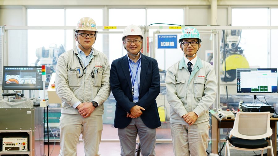 Various testing is currently being repeated with the goal of further expanding the functions of the Successor-G. Users say that, “Because we are going to install a robot, we want to improve the grinding efficiency.” In response to this request, a compact grinder is being developed that has equivalent capabilities to a heavyweight swing grinder tha👍t is used suspended on a hoist or the like. Element tests are being implemented for the robot operated remotely.