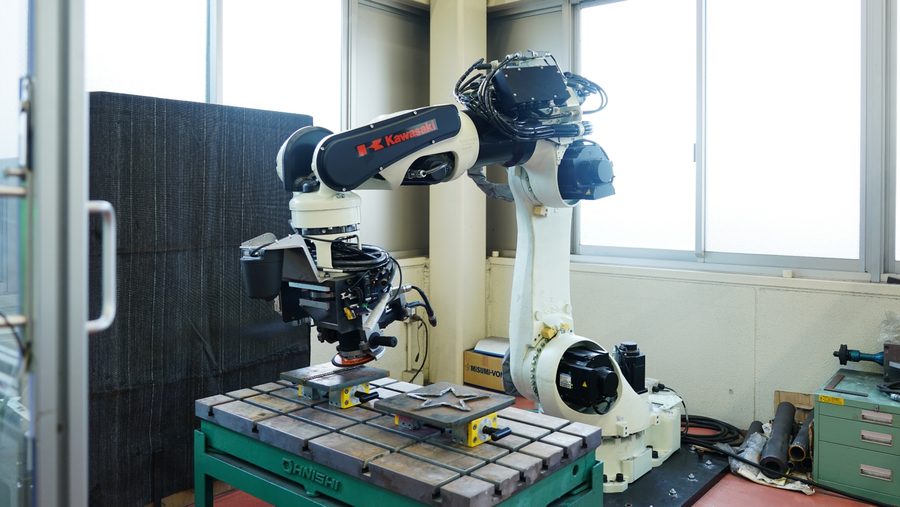 ― Company information Company name :Kawasaki Heavy Industries, Ltd. Energy Solution & Marine Engineering Company, Harima Works Representative :Representative Director, President and CEO, Yasuhiko Hashimoto Established: October 1896 Capital: 104,484 million yen Core business: Manufacturing and sales of marine vessels, railway cars, aircraft, motorcycles, gas turbines, gas engines, industrial plants hydraulic equipment, robots, etc. Employees: 36,691 Offices: Tokyo Head Office: 1-14-5, Kaigan, Minato-ku, Tokyo Kobe Head Office: 1-1-3, Higashikawasaki-cho, Chuo-ku, Kobe, Hyogo Prefecture Website : ― Robot system installed System model :Successor-G Features: A remote control type grinder robot system that can be used without teaching for the grinding of welded structures and burr removal and surface finishing processing on cast iron